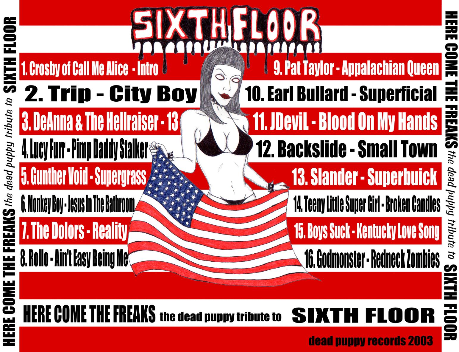 "HERE COME THE FREAKS" The Dead Puppy Tribute To SIXTH FLOOR Better Step Aside! HERE COME THE FREAKS! SIXTH FLOOR one of the most original underground acts recordings and performing today have earned the respect of many! And now with the help of DEAD PUPPY RECORDS maybe they will gain even more! |
