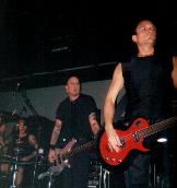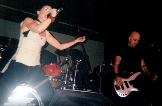 The lights go down, and the sweet sound of FREE's voice (lead singer) echoes through the PA. It's a track from the latest cd ZEROSPACE (read the review in the reviews section) TAKE A TRAIN (the awakening). As the track plays the band slowly takes the stage. Chris the small and wiry Punk Rock meets Industrial Guitarist with his black hair and Red Mohawk is at far right. FIGIT (possibly spelled FIJIT Nor sure) is to the left of CHRIS with his bald head, eyebrows tattooed with small dots. and facial piercings! SHAUN the drummer with four braid very noticeable in the ZEROSPACE video! And The GIANT of a man BRUCE SOMERS, very Tall, With Short Blonde Hair and a Long Blonde Goatee! Then Finally FREE Very Petit' with Long Dark Hair and Glittery Eye Make Up! Small And Sexy She strolls Onto The Stage Owning every Inch Of It!